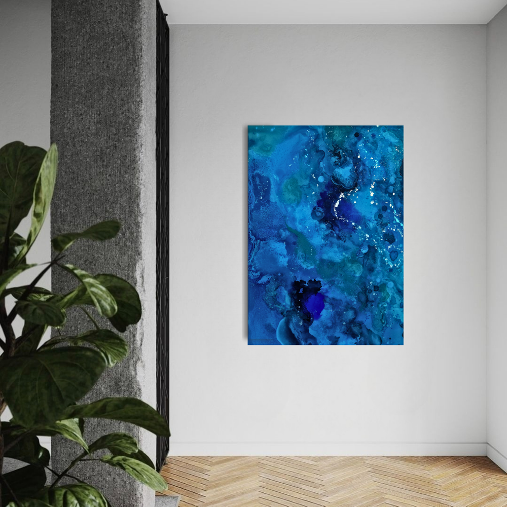 Once the piece is almost finished (before being fully top coated) I will send final photos to show your end result, to get the go ahead to fully finish your artwork with my professional resin top coat. At this stage, any final tweaks or changes can be requested. Once I get the go ahead to finish it, I will sand your artwork and prep it for one final layer of high quality, clear resin, to get an amazing finish on your artwork. I then paint the edges of the art panel the colour we’ve agreed, and will send photos of your fully finished piece. Then I will package your artwork securely and ship your artwork straight to your front door, ready to hang in your home.