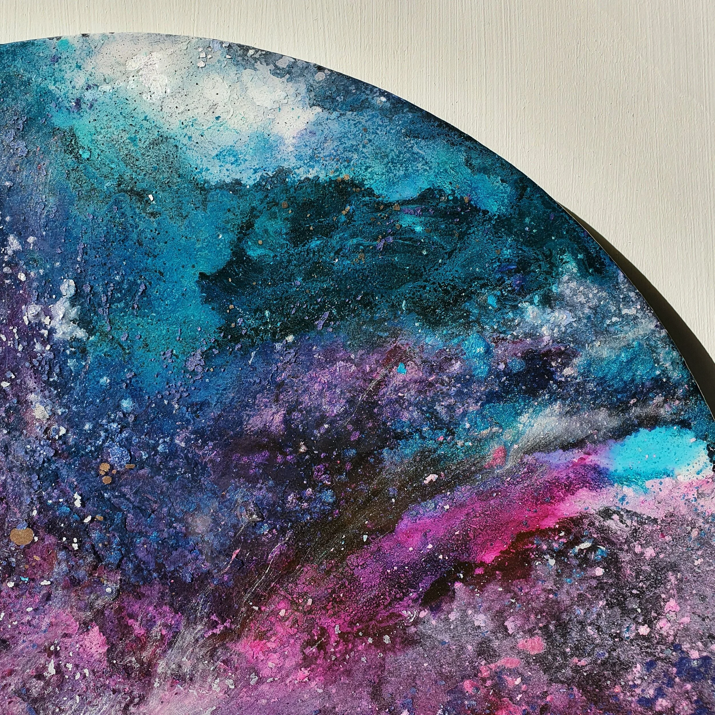 This artwork is top coated with clear resin once purchased for a high shine, glassy finish, more information below.